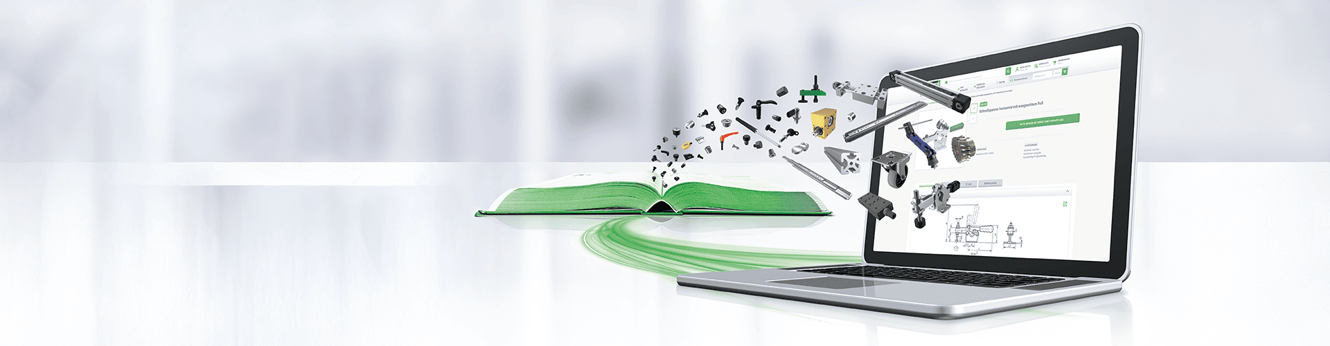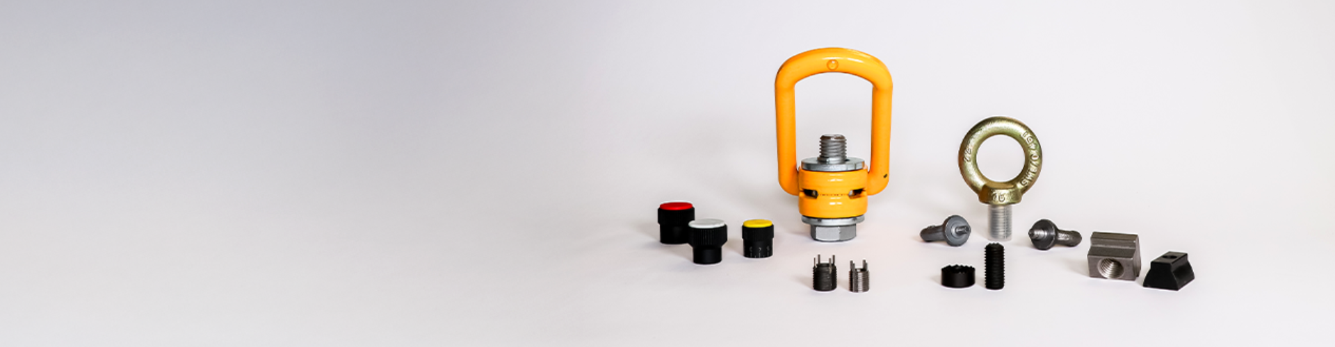 Der Produktbereich 06000 umfasst Bedien- und Feststellelemente wie Rändelmuttern und Rändelschrauben, Kreuzgriffe und Sterngriffe, Spannhebel und Klemmhebel.