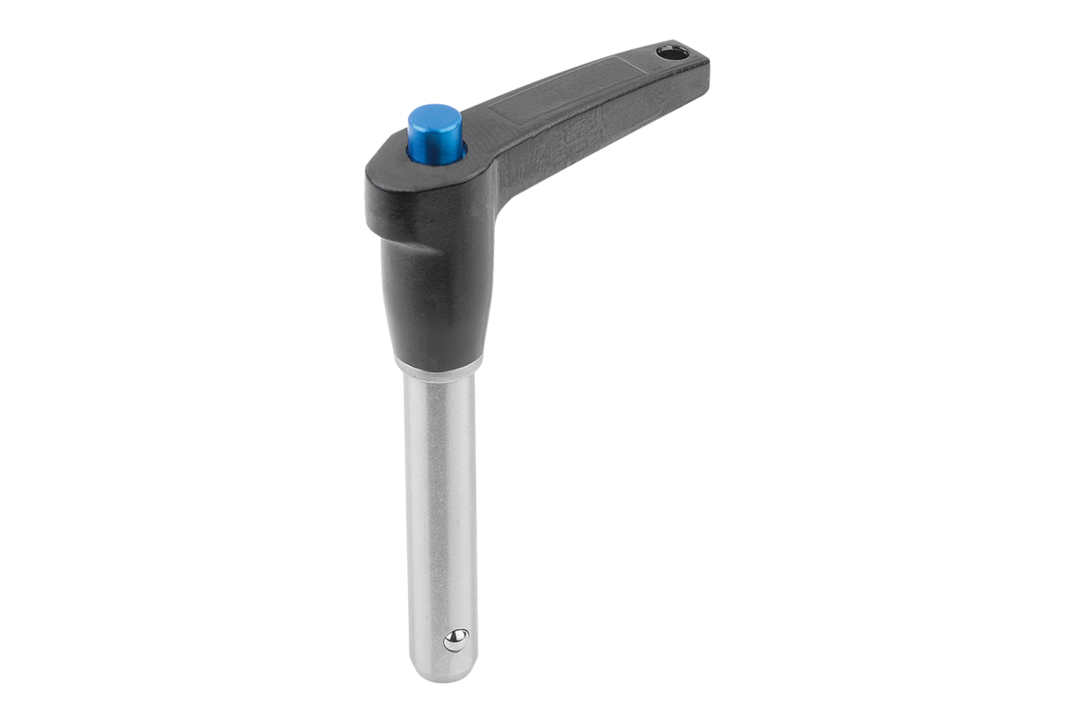 Kugelsperrbolzen dienen zum schnellen und einfachen Fixieren und Verbinden von Teilen und Werkstücken. Durch Drücken des Druckknopfes können die beiden Kugeln entriegelt und somit die zu verbindenden Teile abgesteckt werden. Wird der Druckknopf losgelassen, verriegeln die Kugeln sicher und unlösbar die Verbindung. Die Kugelsperrbolzen können nach Bedarf mit einem Halteseil versehen werden.
