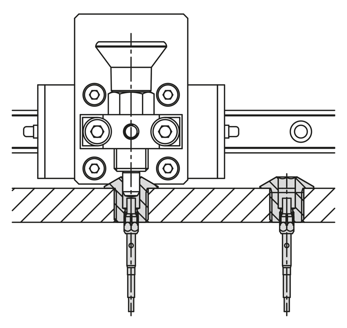 Der Sensor ermöglicht es, elektronisch abzufragen, ob sich ein Bolzen in der Positionierbuchse befindet oder nicht.