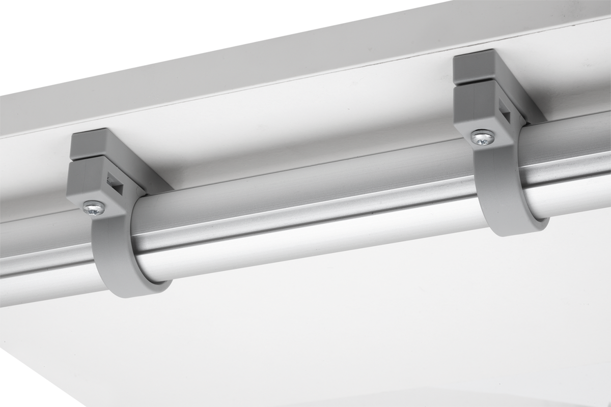 Für die universelle Befestigung von Flächenelementen oder beliebigen Bauteilen an Rundrohren und Profilrohren mit 30 mm Außendurchmesser.