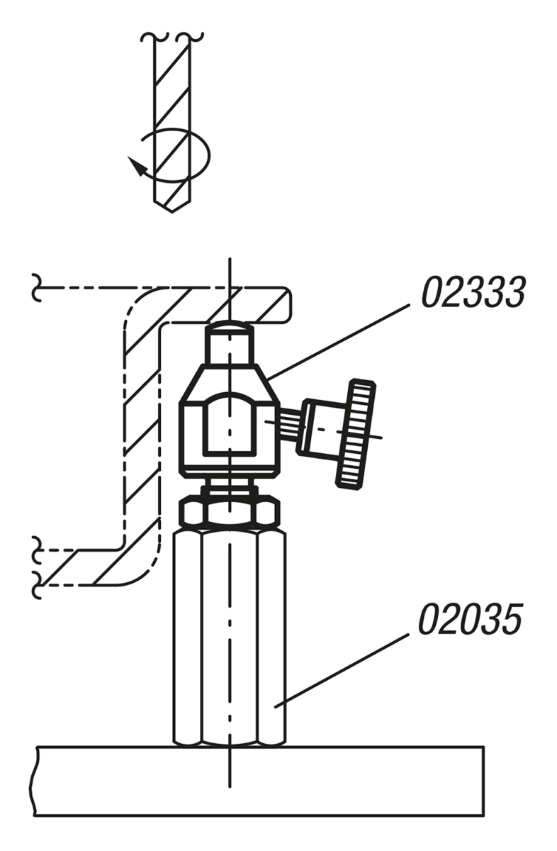 Grundkörper brüniert. Auflagebolzen gehärtet und brüniert.