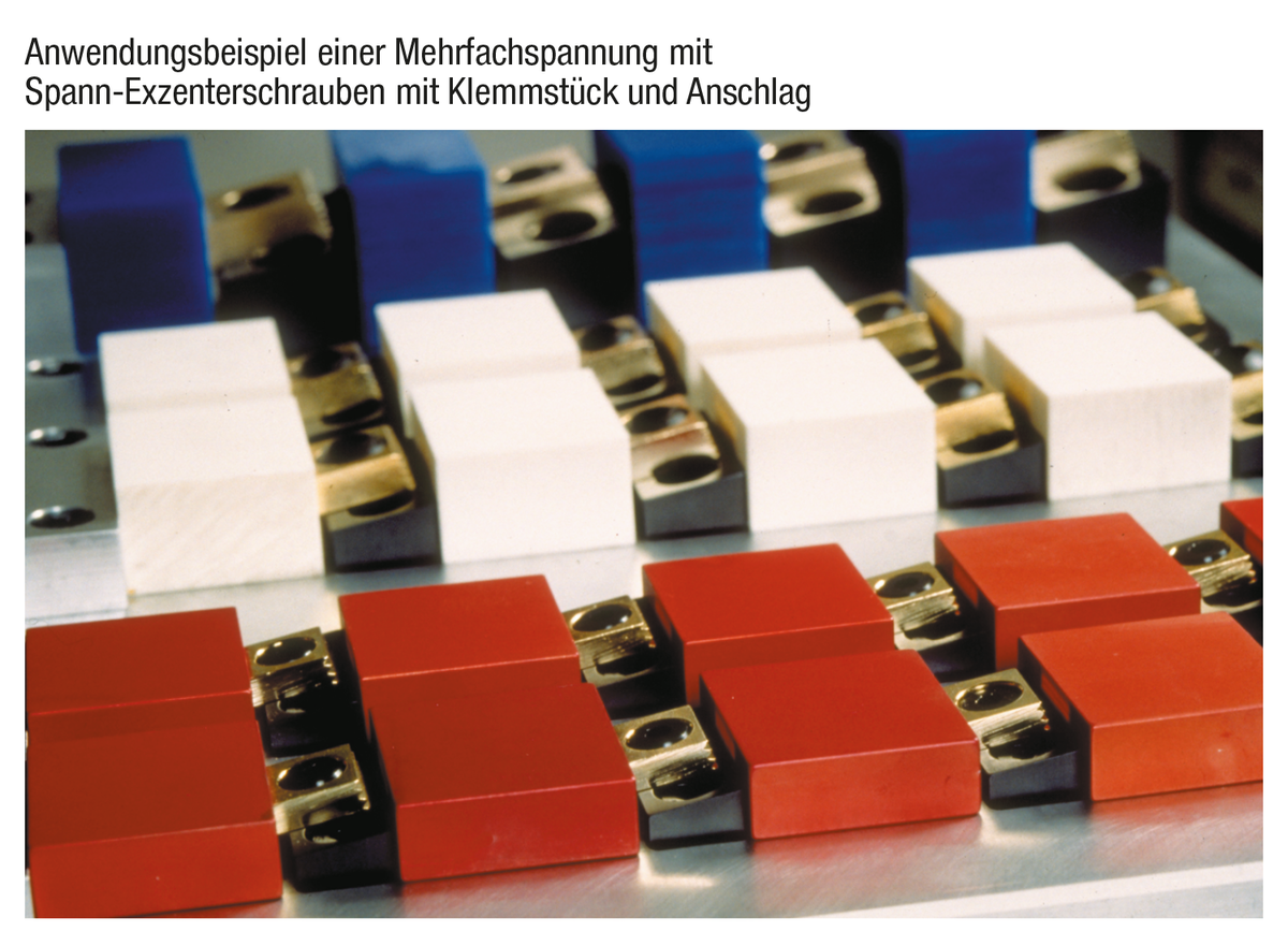 Mit der Spann-Exzenterschraube mit Klemmstück und Anschlag können platzsparende und kostengünstige Mehrfachspannungen erstellt werden.