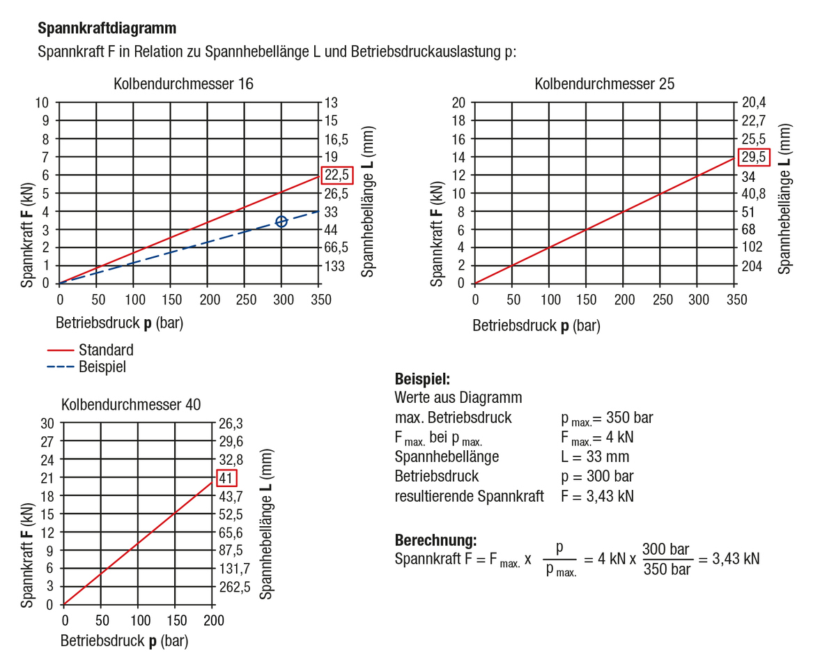 - Max. Betriebsdruck für Kolbendurchmesser 16 und 25: 350 bar.