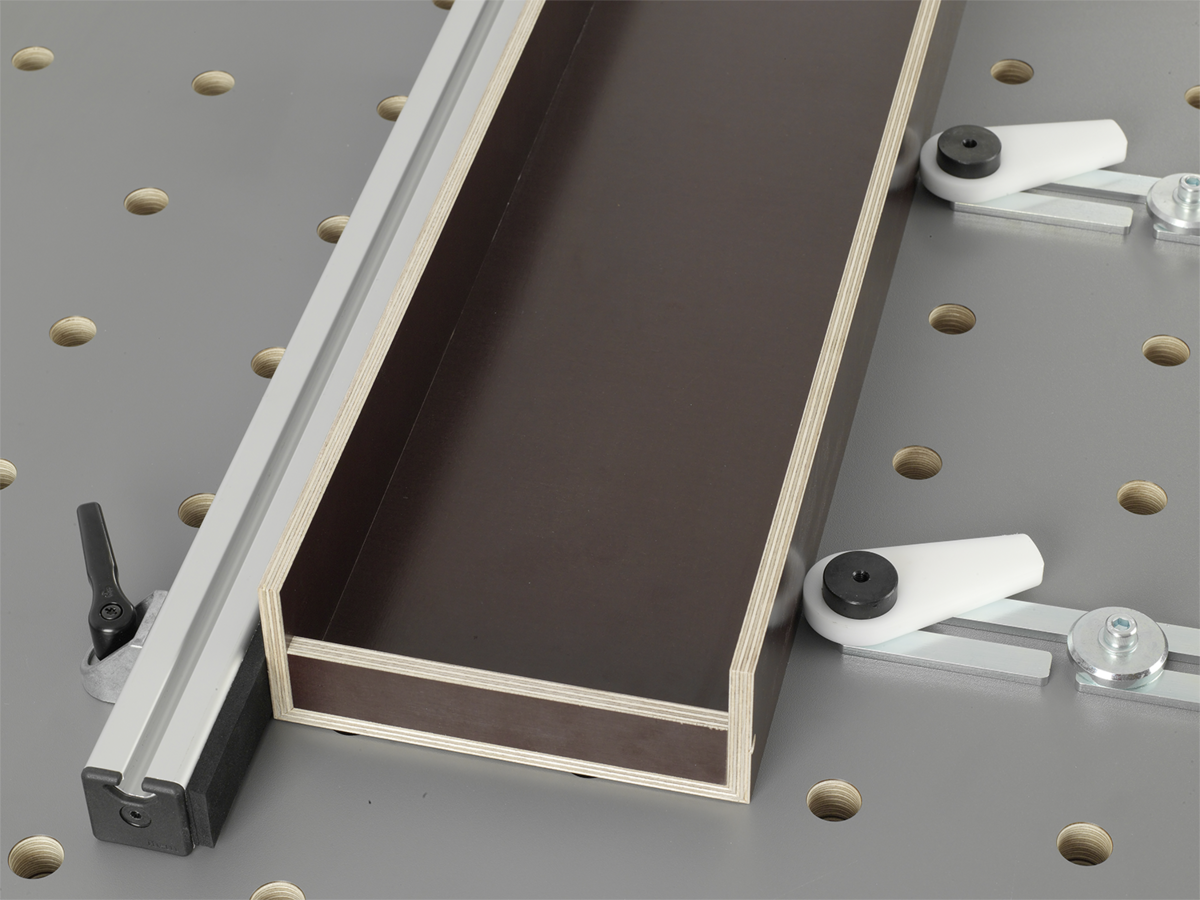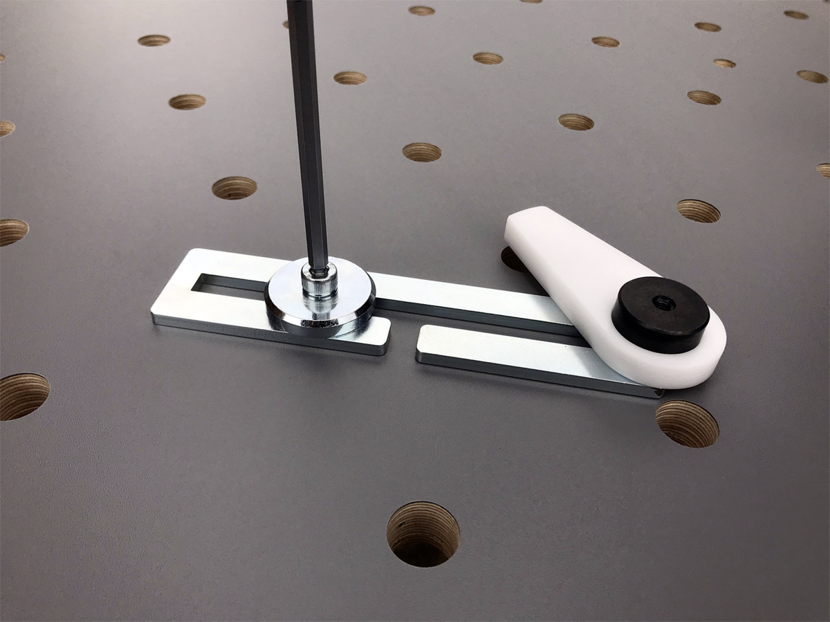 Platten können in Verbindung mit Drehlager und Exzenterspanner für eine indirekte Spannung eingesetzt werden. Die Platten werden mit Hilfe der Spannbolzen mit Scheibe auf Lochrastertischen fixiert. In Kombination mit Exzenter Spannmodulen, können diese auch auf Maschinentischen mit Nuten gespannt werden.