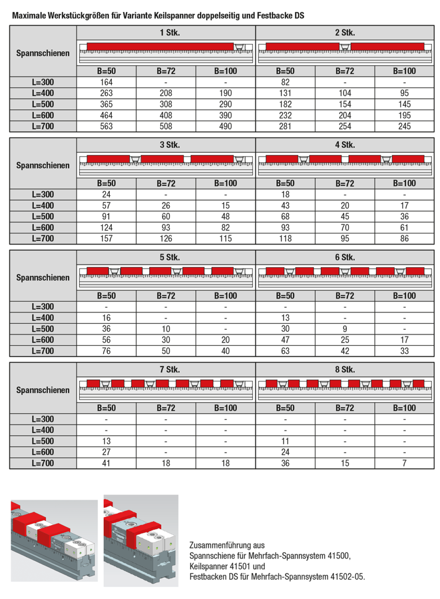- Mehrfach-Spannsysteme Keilspanner einseitig mit Festbacke ES / 41510-20.