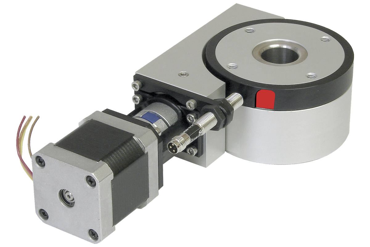 Der Sensorhalter dient zur Befestigung von induktiven Nährungsschalter (z.B. 83000-10-050) an dem Positionier-Rundtisch mit elektrischem Antrieb. Dadurch ist eine freie Wahl des Schaltpunktes möglich. Der Ring mit der Schaltnut kann gegenüber der Drehscheibe frei gedreht werden.