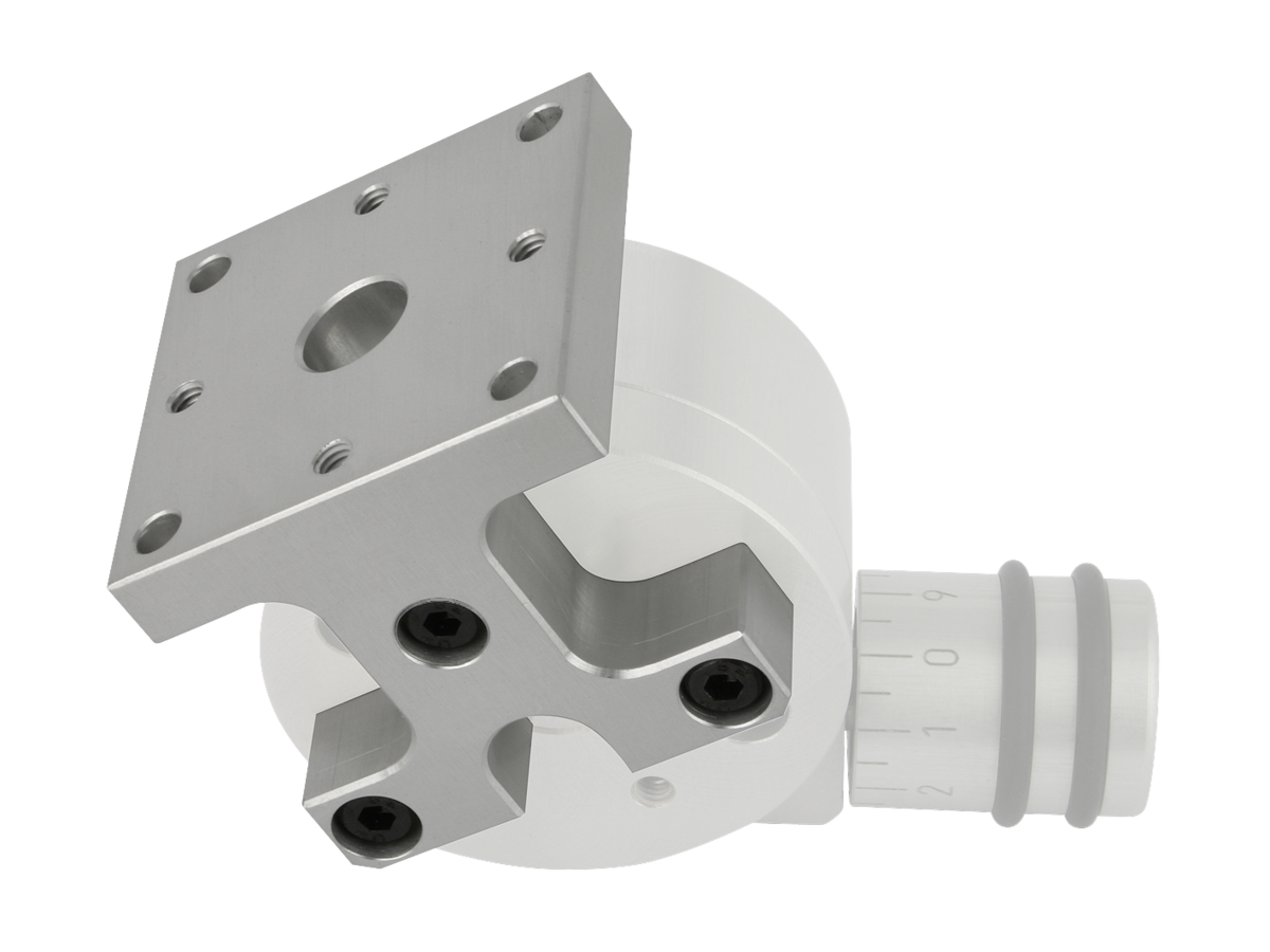 Der Schwenkwinkel wird auf dem Positionier-Rundtisch montiert und bietet somit erweiterte Montagemöglichkeiten. Passend zu 21160 in der jeweiligen Baugröße.