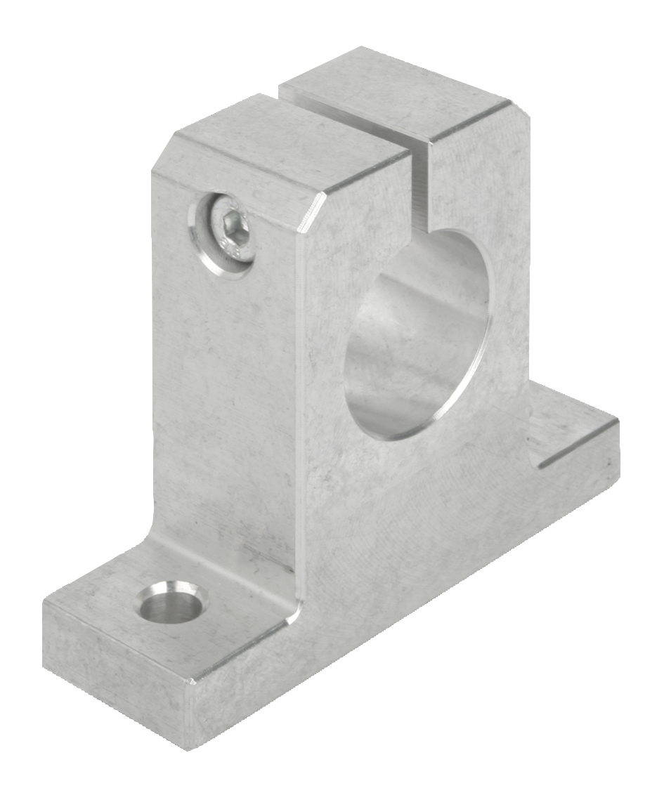 Wellenböcke mit Aufnahmebohrung zur einfachen und sicheren Klemmung und Befestigung der Führungswellen.