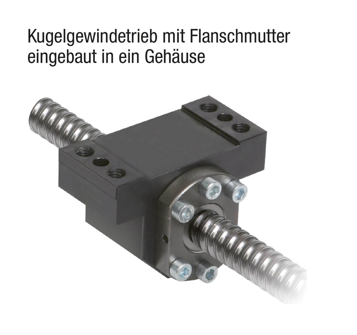 Die Gehäuse sind für die Montage von Flanschmuttern nach DIN 69051 Teil 5 geeignet. Die Achshöhe der Spindellagerung ist mit den Festlagereinheiten 24072 und den Loslagereinheiten 24074 abgestimmt. Die Gehäuse sind von oben oder unten anschraubbar und mit zwei Kegelstiften oder Zylinderstiften verstiftbar. Lieferung mit 6 Stück Befestigungsschrauben der Festigkeitsklasse 8.8.