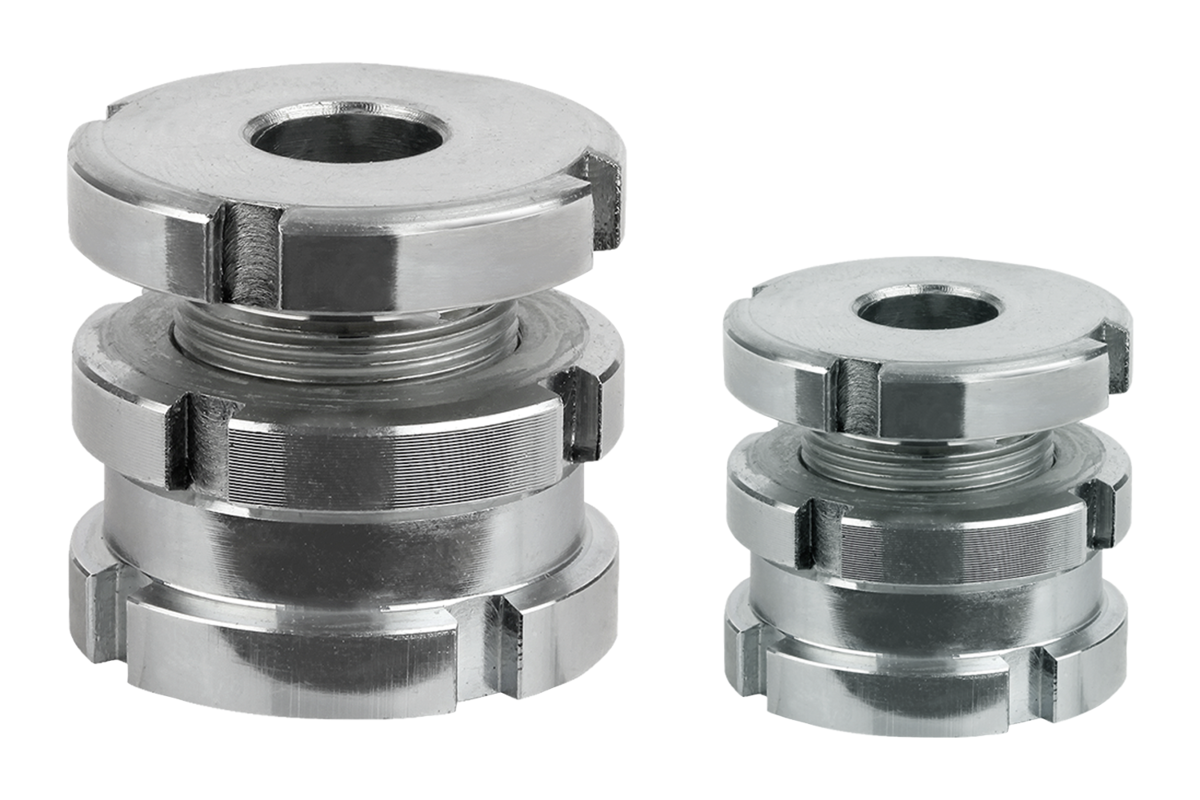 Die Höhenverstell-Elemente niedrige Ausführung mit Kontermutter finden dort Verwendung, wo es um die Aufstellung und das Ausrichten von Motoren, Aggregaten, Antriebselementen und Fertigungsstraßen geht. Der Vorteil ist ihre geringe Bauhöhe. Damit lässt sich eine Ausrichtung auch bei mehreren Lagerstellen einfach und exakt vornehmen. Dadurch ist eine verspannungsfreie Montage gewährleistet. Dabei dient die Kontermutter zur Sicherung einer vorgegebenen Einstellung.