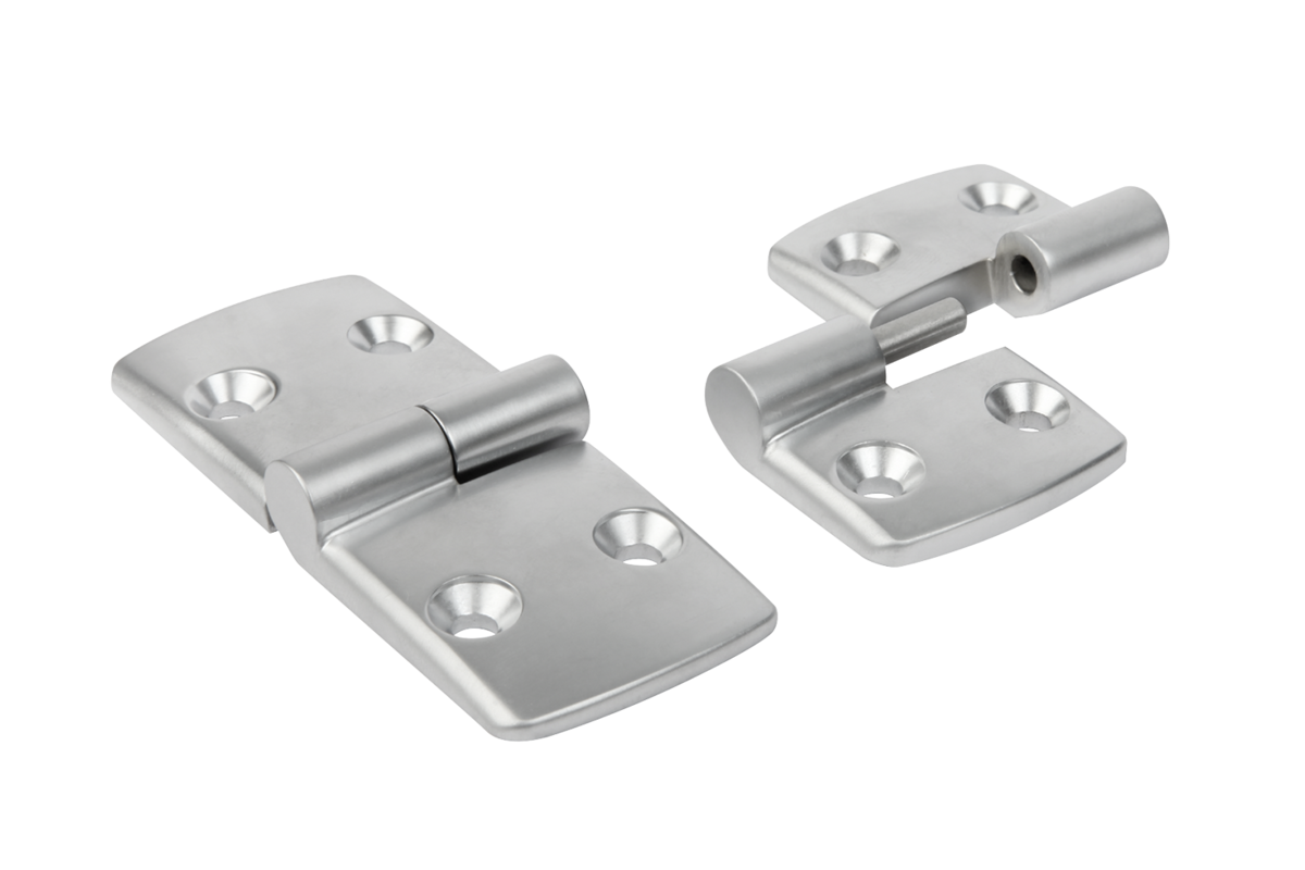 Scharniere für Flächenelemente und Aluminiumprofile.
