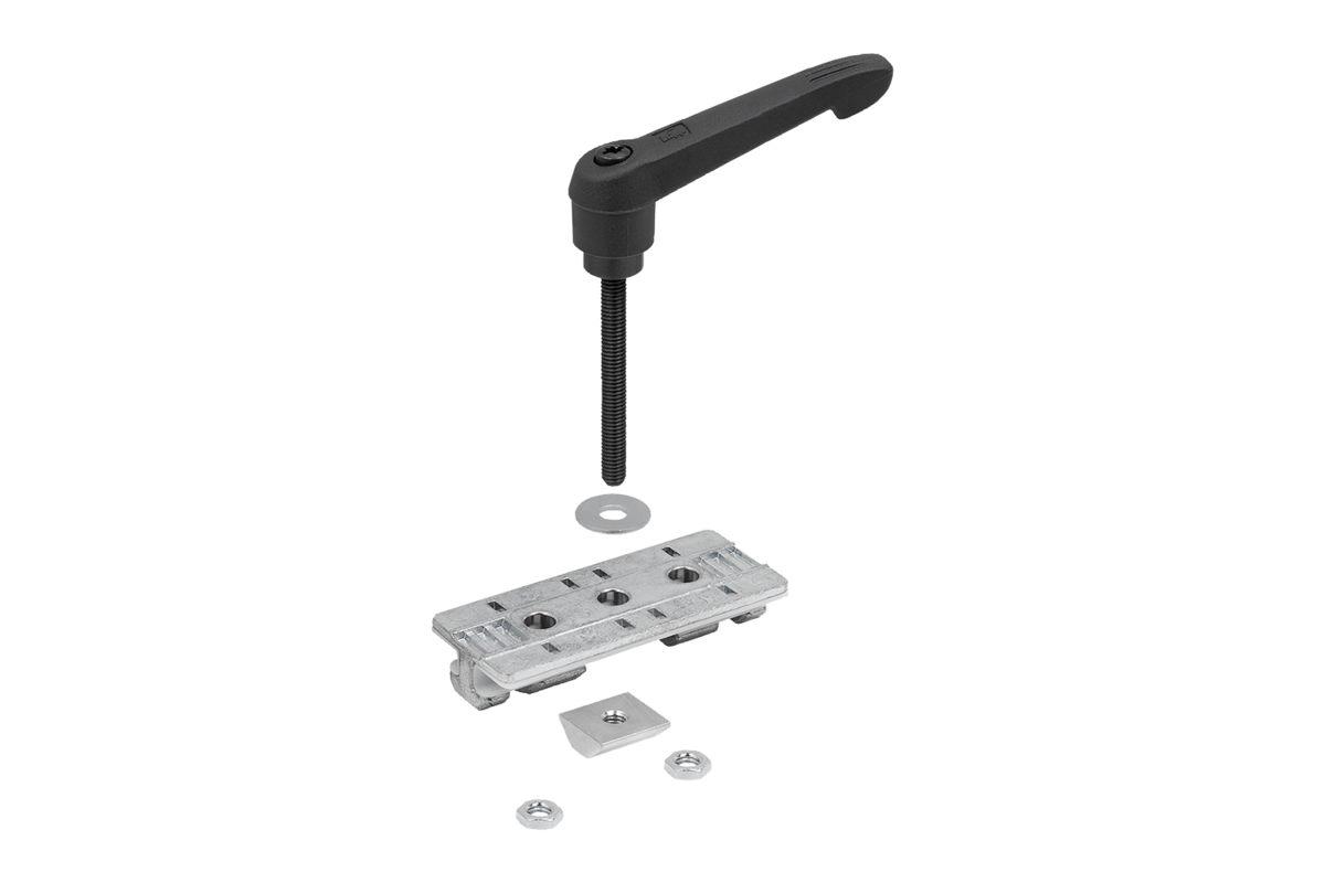 1x M6x55 clamping lever with DIN 9021 6.4 mm washer and special M6 slot key for 8 mm slots.