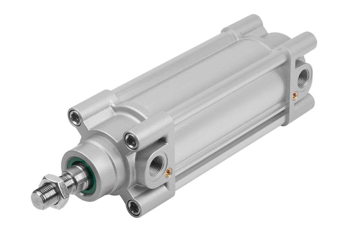 Double-acting pneumatic cylinder in construction-optimised design acc. to DIN ISO 15552. Piston rod with external thread, position detection and adjustable pneumatic damping.