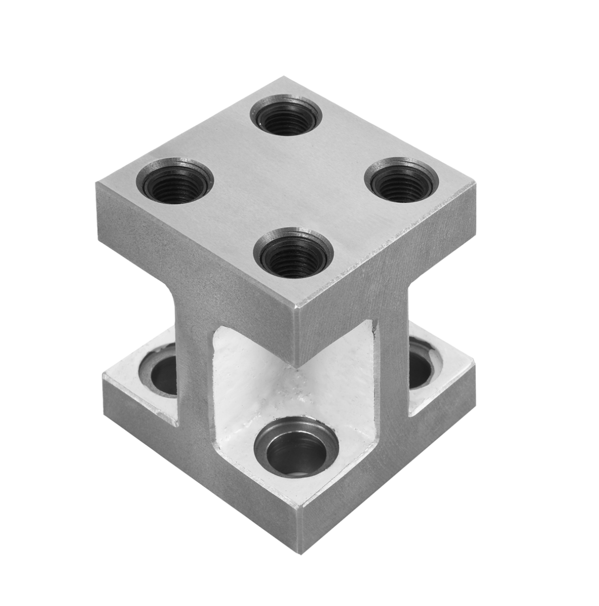 Riser blocks are used for constructing modular fixtures. Several riser blocks can be mounted on each other. Support elements, clamping devices, and stops can then be mounted on the top riser block. Riser blocks are fastened using DIN 912 cap screws.