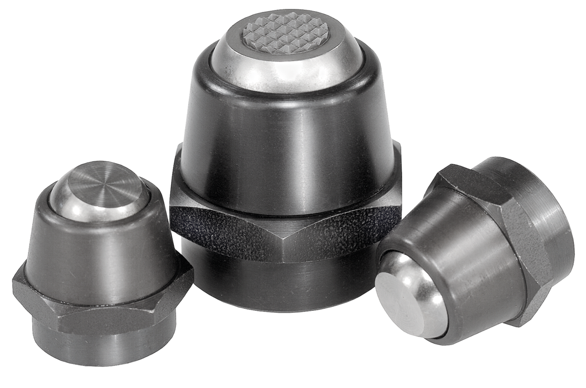 Self-aligning pads are used to support and clamp unmachined and machined workpieces. They also serve as stops, supports and thrust pads in fixture and toolmaking.