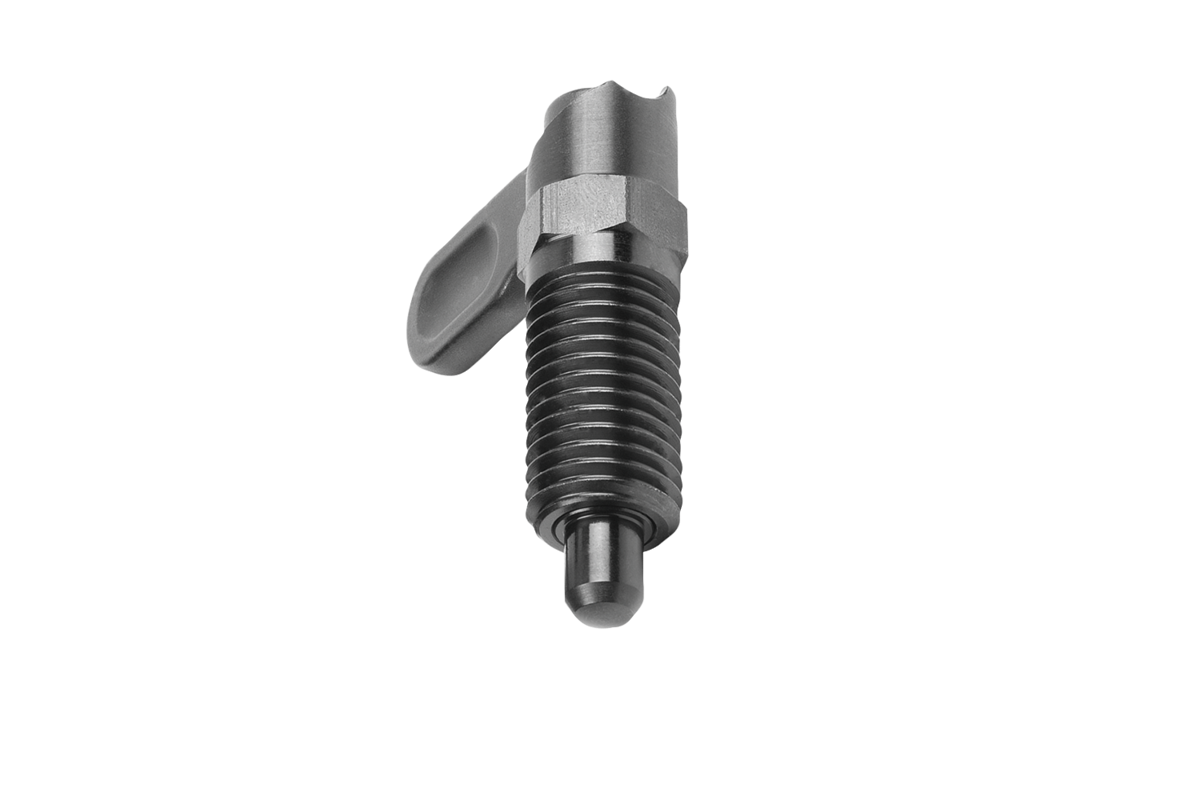 Cam-action indexing plungers are used when the indexing pin should not project all the time. Turning the handle through 180° retracts the pin.