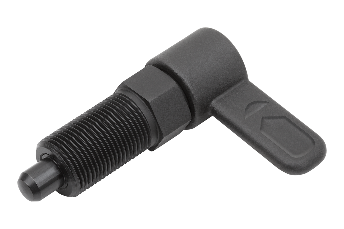 Cam-action indexing plungers are used where any change in locking position due to lateral forces should be prevented. Turning the grip through 180° retracts the indexing pin, enabling a change in the indexed position. The notch ensures that the grip remains in this position and the indexing pin remains retracted.