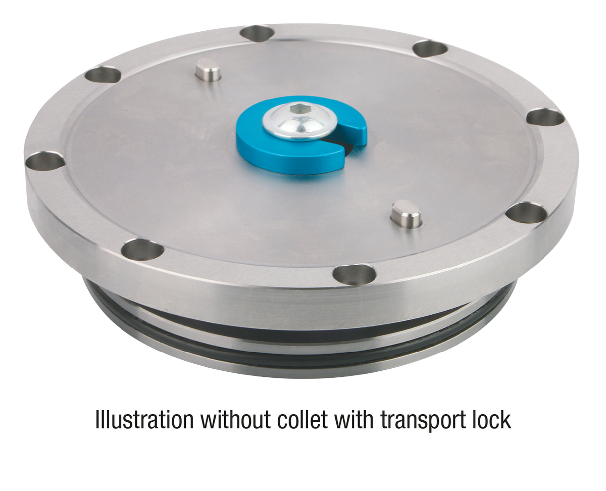 The machinable collet system is suitable for mounting on fixtures and clamping systems. Collets for external and internal clamping can be mounted on the flange plate. The contour of the workpiece to be clamped is machined into the collet. Free-form and asymmetrical contours can be clamped.