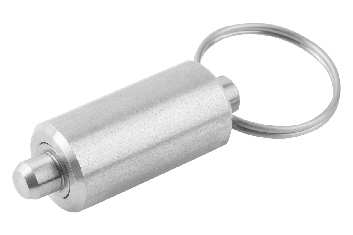 Indexing plungers are used where any change in locking position due to lateral forces should be prevented. A new locking position can only be attained after the pin has been manually disengaged. The keyring allows for automatic operation (program controlled) using e.g. pneumatic cylinders or remote control using bowden cables.