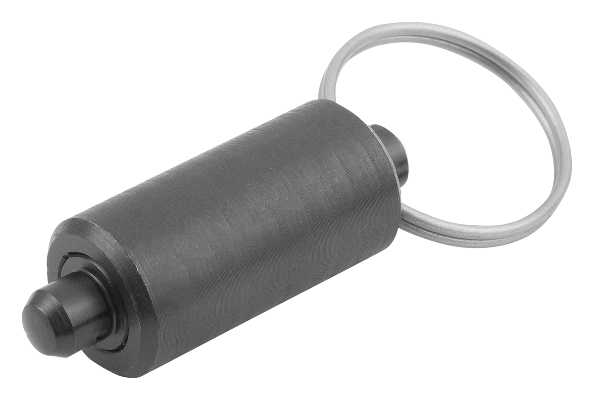 Indexing plungers are used where any change in locking position due to lateral forces should be prevented. A new locking position can only be attained after the pin has been manually disengaged. The keyring allows for automatic operation (program controlled) using e.g. pneumatic cylinders or remote control using bowden cables.