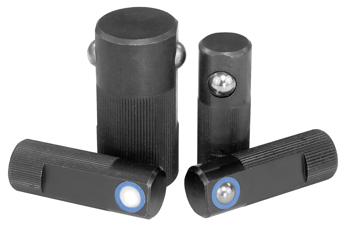 The lateral spring plunger must be pressed into the hole to at least depth L3. These plungers are for positioning and holding small parts in fixtures. If mechanical machining of the workpiece is to be carried out, other clamps may be necessary. When the fixture is not in use it should be ensured that plastic springs are not under stress.