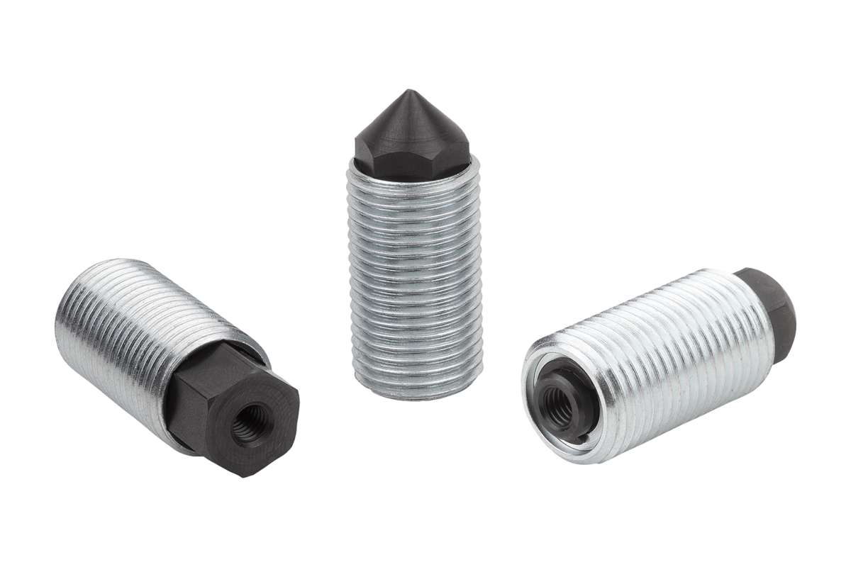 The push-pull spring plungers, also called two-way spring plungers are used to engage, position or clamp various components. The hexagonal tapped pin which cannot rotate can be used for traction or thrust.
