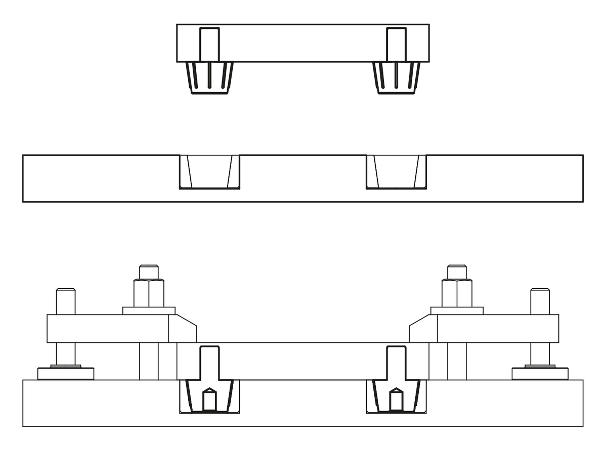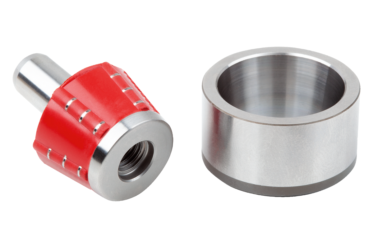 In conjunction with the position bushings, the position cones form a centring unit for the high-precision positioning of two components. The system achieves a repeat accuracy of <0.003 mm. The bonded rubber does not become brittle and is insensitive to contamination or swarf. Small embedded swarf splinters do not effect the system.