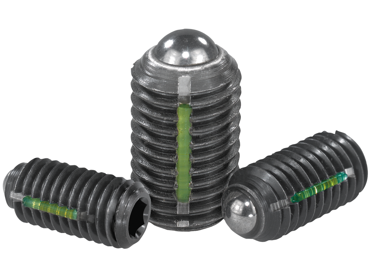 Spring plungers with hexagon socket and ball, steel, standard spring force, with thread lock