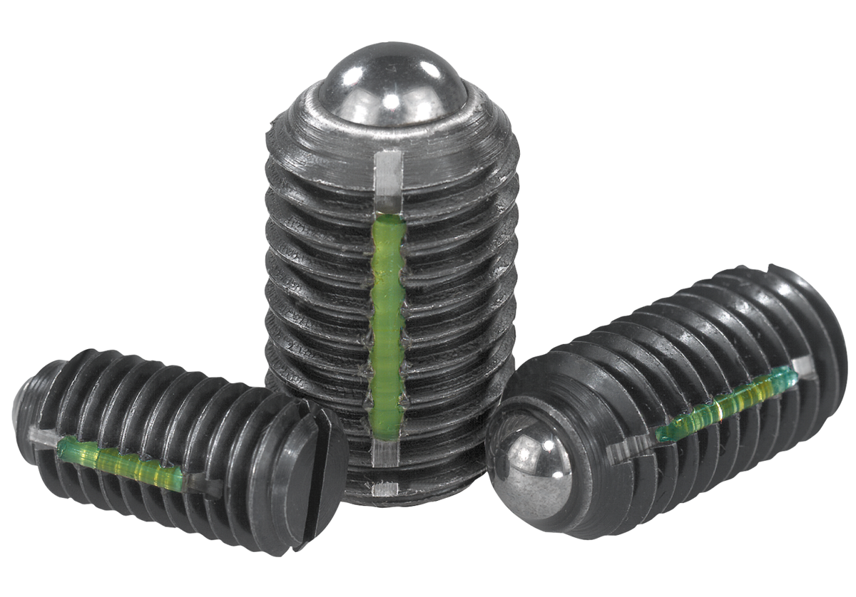 Spring plungers with slot and ball, steel, strong spring force, with thread lock