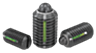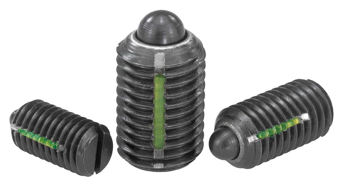 Spring plungers with slot and thrust pin, steel, light spring force, with thread lock