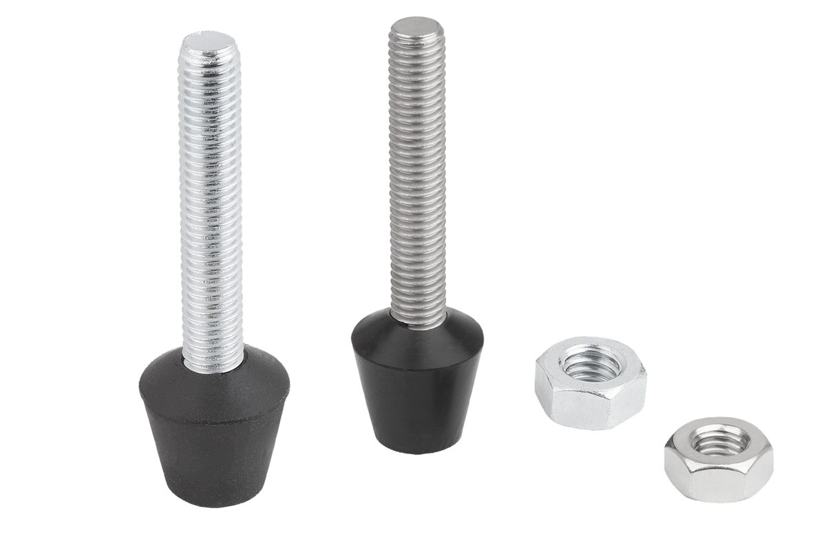 Threaded spindle and nuts in steel or stainless steel.
