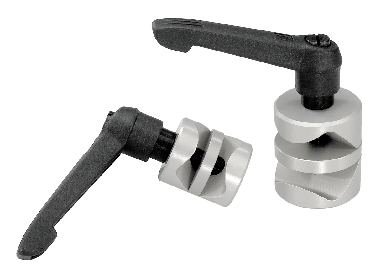 Clamping joints are used to clamp round cross sections (bars, tubes, etc.) and are infinitely adjustable.