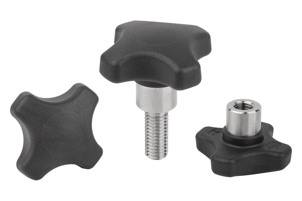 Palm grips, plastic, metal detectable, with protruding steel bush, Form K with tapped bush