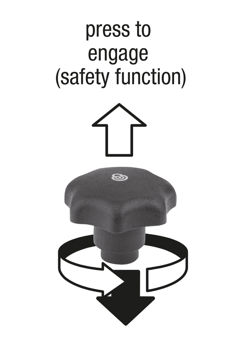 Star grips with safety function prevent changes to the clamping point by accidental opening or closing.