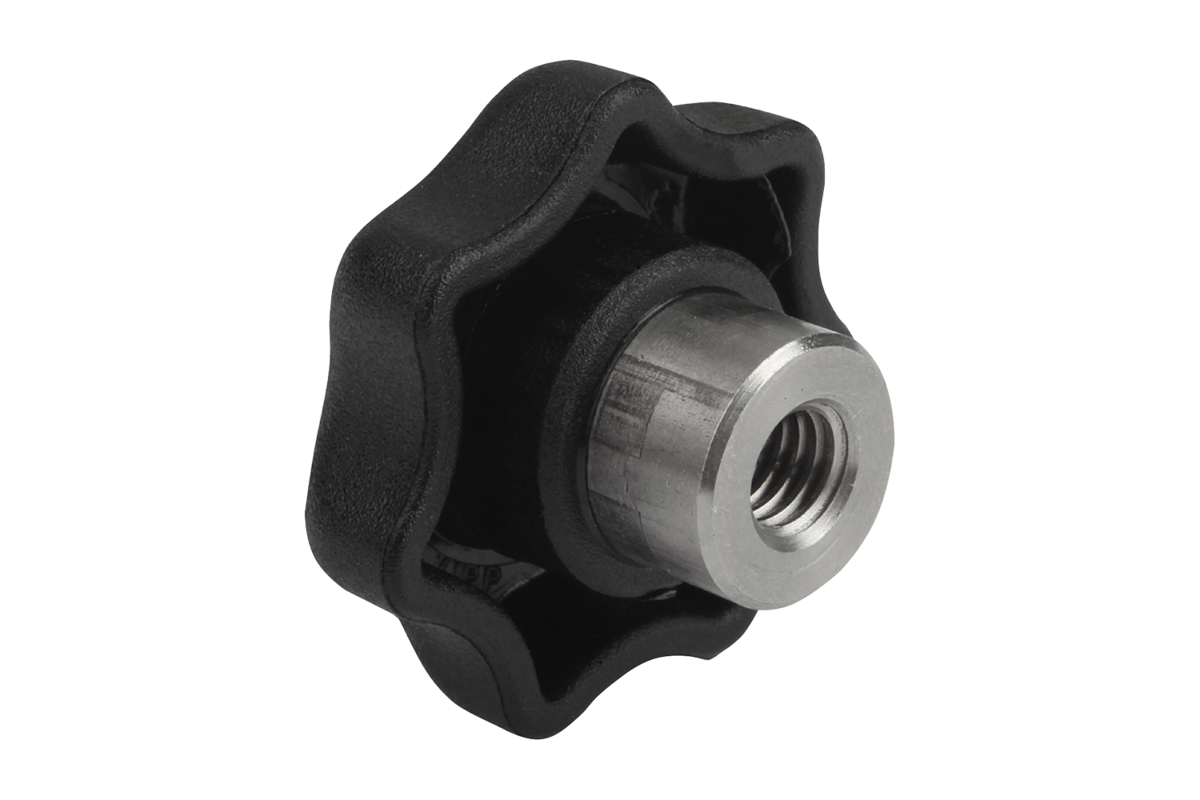 Star grips with projecting steel bush and blind hole or internal thread are especially suited for cross pinning.