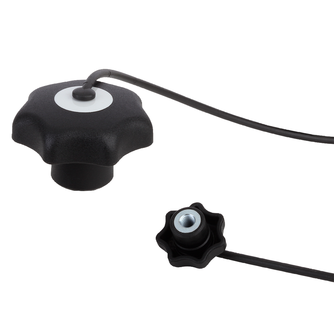 Attach the safety cable to a base to make the star grip unlosable. The star grip cannot be moved far from the object to which it belongs, simplifying screwing and unscrewing of the grip and ensuring against loss.