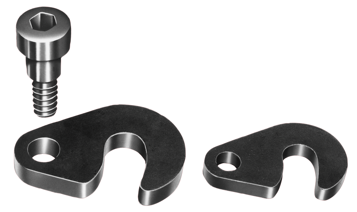 Captive C-washer case-hardened and black oxidised.Shoulder screw tempered and black oxidised.
