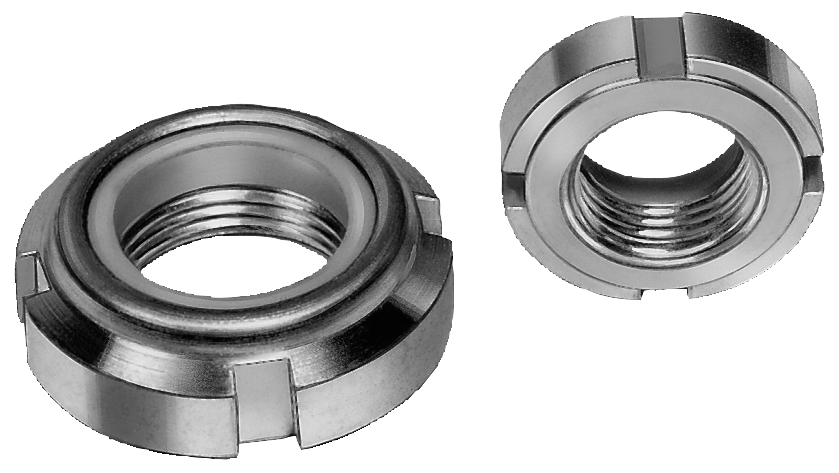 Elastic lock slotted nuts can be used several times. They withstand the strongest vibrations and oscillations irrespective of the tightening torque and are therefore useful as adjustment nuts.
