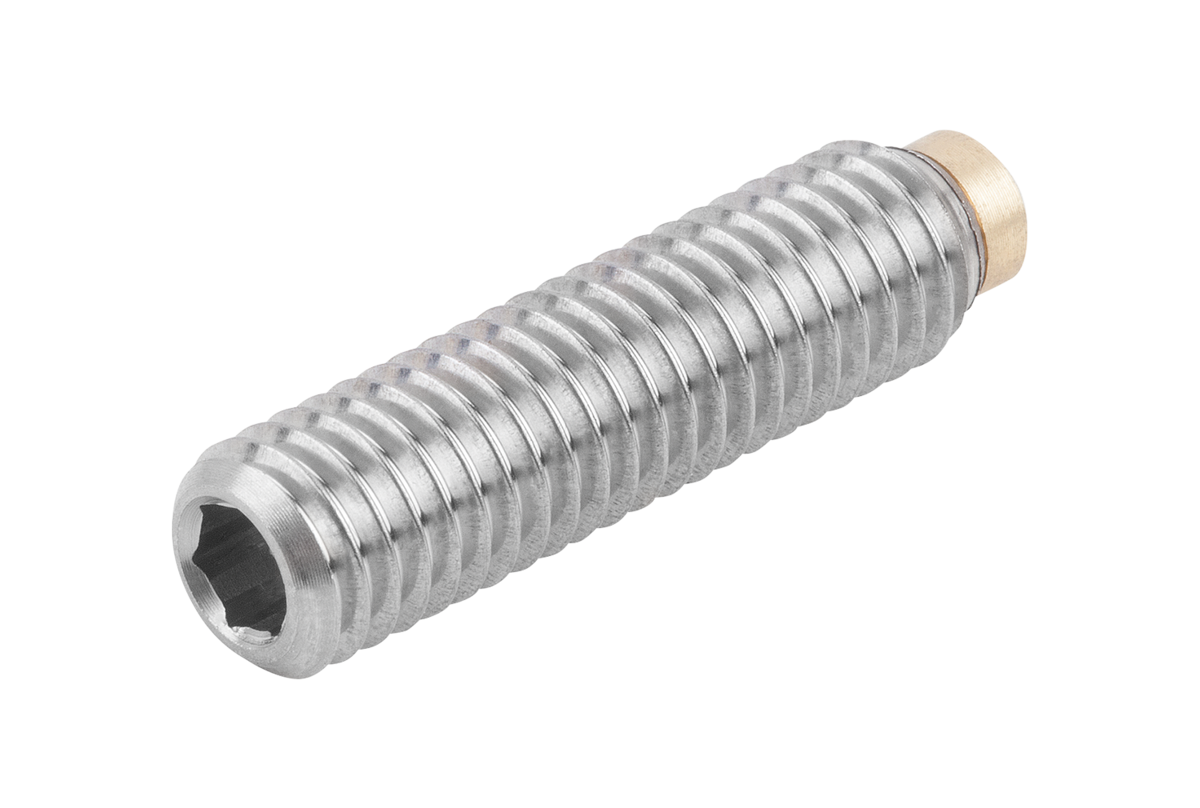 Thrust screws are ideal for clamping or exerting pressure on threaded spindles, axles, shafts and treated surfaces without marring.