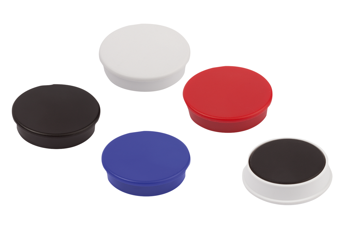 These magnets are often used on notice boards, whiteboards and magnetic boards.