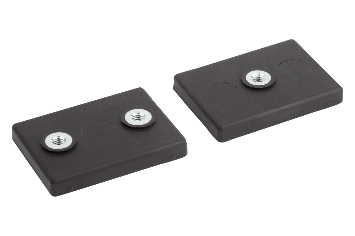 Magnet with internal thread. Shielded system. With rubber protective jacket for protecting sensitive surfaces. The coefficient of friction is increased by the rubber jacket so that high lateral friction is achieved.