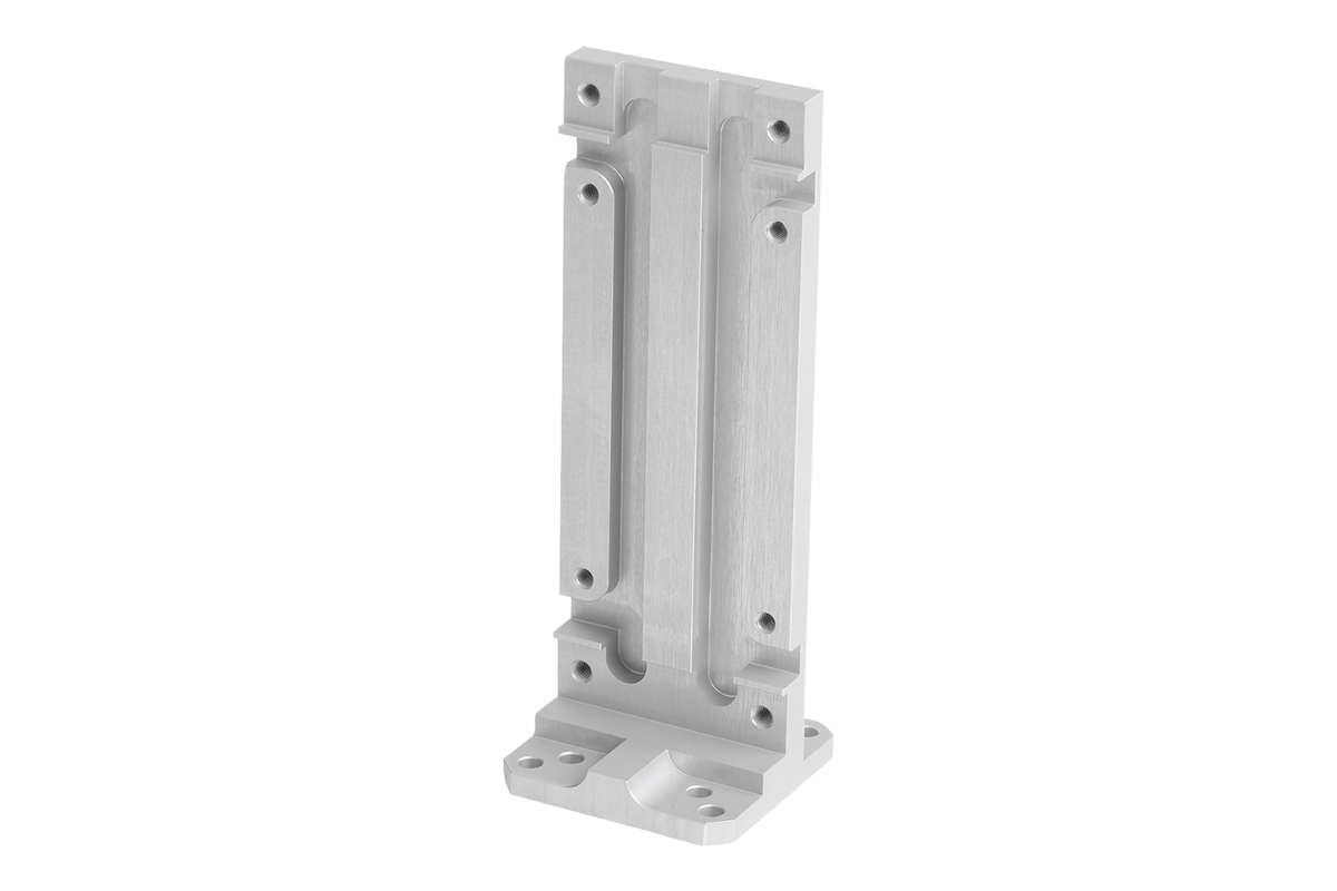 The mounting plate is used for the vertical mounting of the short or long positioning stages with electric drive. With slots for direct support of inductive proximity switch (20905-005). The proximity switch can be adjusted when the positioning unit is mounted. The threaded holes M4 are used to fasten the sensor holder 21093.