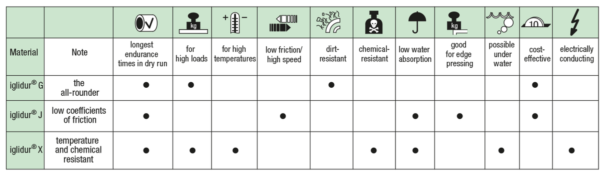 High-performance polymer iglidur® G, iglidur® J or iglidur® X.