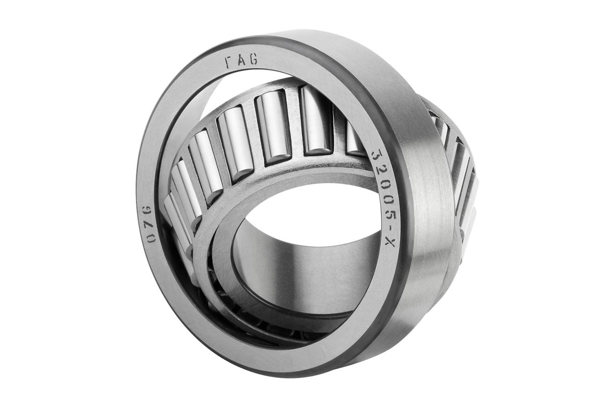 Tapered roller bearings can accept high radial and axial loads. Axial loads are absorbed in only one direction. For axial counter support a second bearing mounted inverse is required. Suitable for medium speeds.