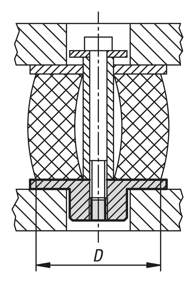 Threaded discs for easy tensioning of elastomer buffers.