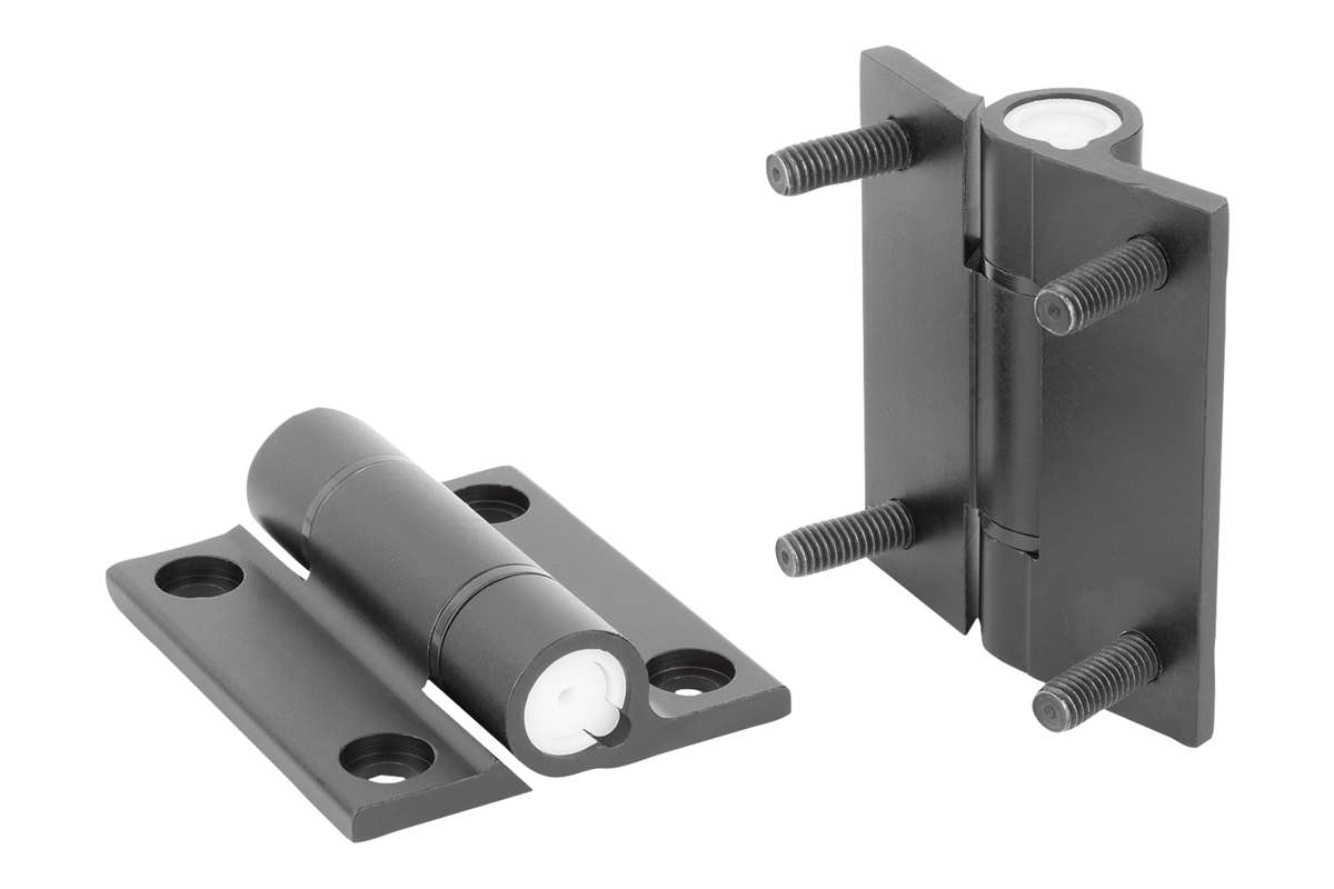 These torque hinges enable doors to remain open in any position. A set screw enables the amount of friction to be infinitely adjusted between 0-5 Nm.