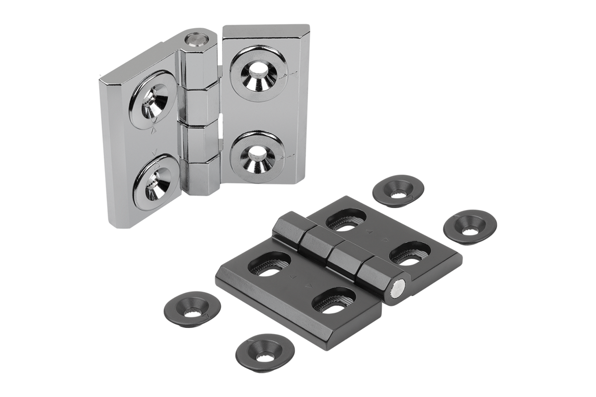 Doors and hatches can be positioned in stages by moving the adjustment bushes. Machining tolerances and door gaps can thus be compensated for and re-adjusted horizontally and vertically.