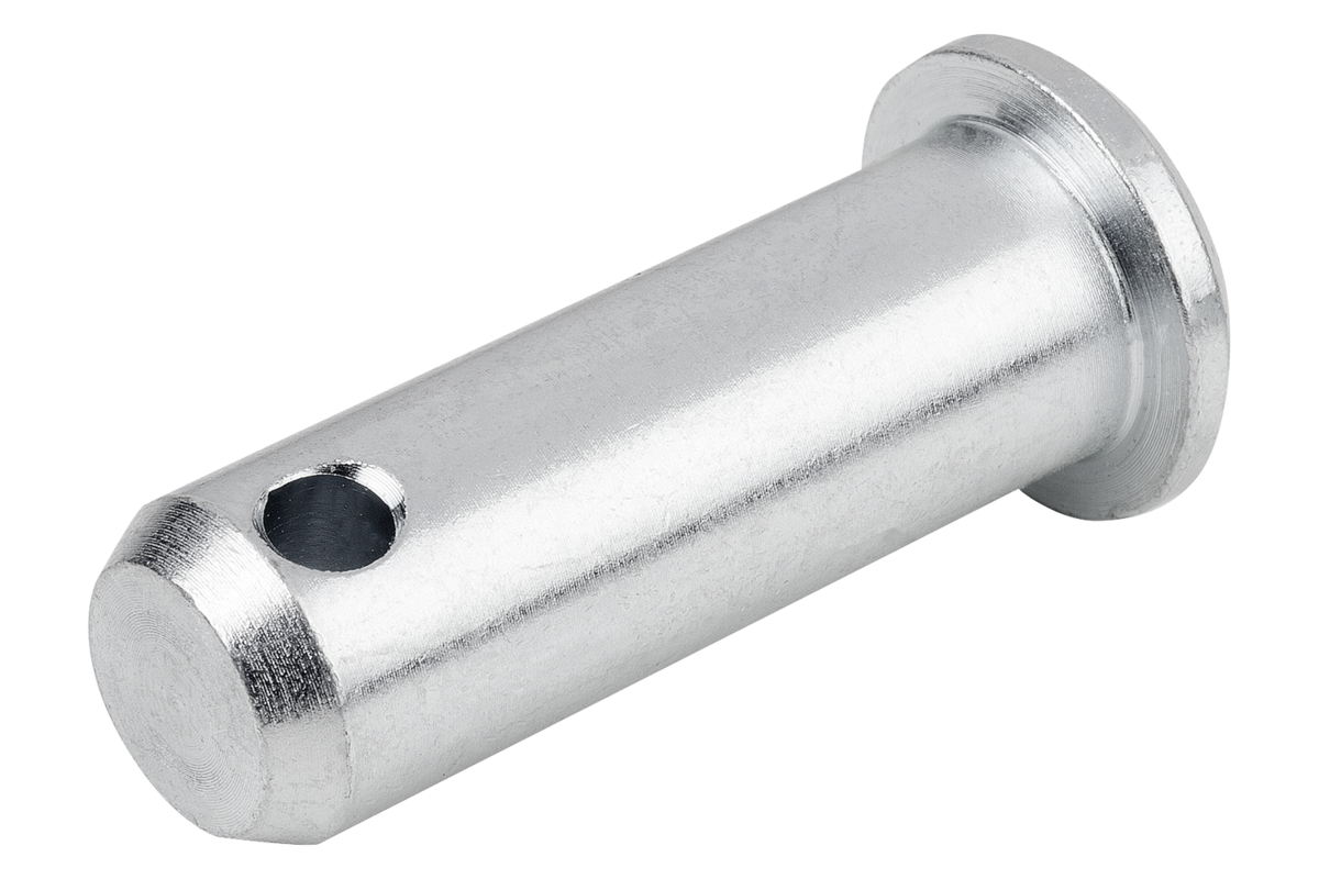 Pins with a hole, suitable for DIN 71752 clevis. Secured with a split pin.