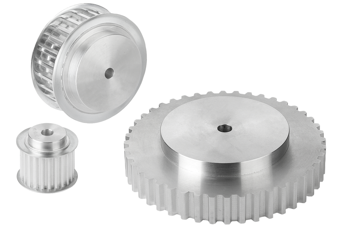 Standard T-Profil nach ISO 17396 mit metrischer Teilung (Verzahnung trapezförmig). Mindestens eine Zahnriemenscheibe muss Bordscheiben aufweisen. Die Zahnriemenscheiben besitzen eine Zentrierbohrung bzw. sind vorgebohrt (dies kann fertigungstechnisch variieren). Aus diesem Grund ist das in der Tabelle angegebene Maß D2 max. der maximale Wert der Bohrung mit dem die Zahnriemenscheiben geliefert werden. Diese Vorbohrung / Zentrierbohrung kann kundenseitig mit einer Passbohrung, Passbohrung mit Nut oder einer Gewindebohrung versehen werden. Alternativ können kundenseitig auch Buchsen eingesetzt werden um den Durchmesser zu verringern.